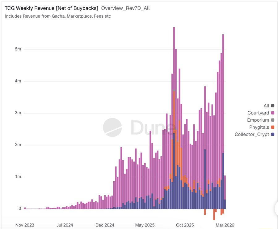 有点反直觉的是,@courtyard_io 和 @Collector_Crypt 的交易量和收入一直在涨。侧面说明业务不依赖只重视交易的加密投机者。