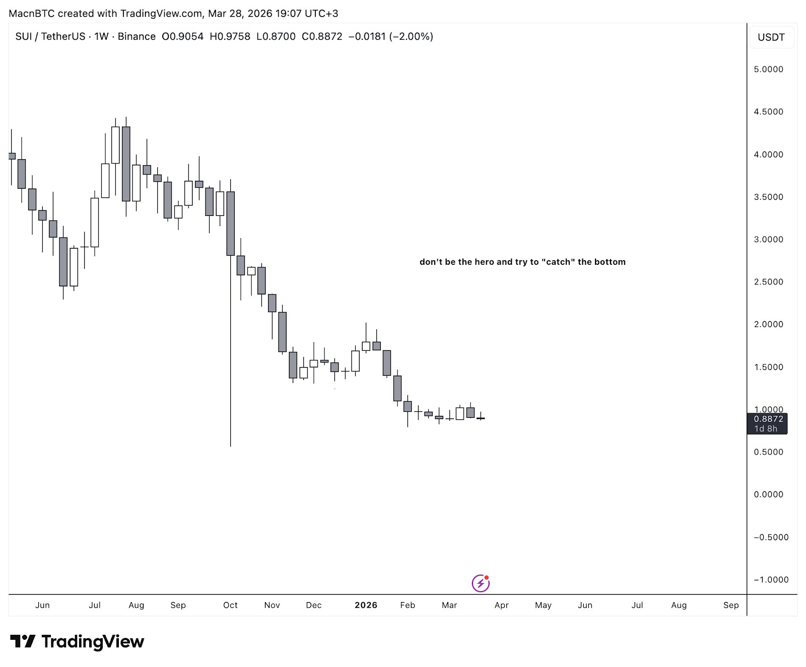 教训二:市场会一次又一次地欺骗你。如果市场结构刚刚转为牛市,而你却担心自己买在了顶部,我只有一个建议:拉远视角。切换到更高的时间框架能帮助你更好地控制情绪,避免因情绪冲动而做出愚蠢的买卖。数不清有多少次在 4 小时图上惊慌失措,然后拉远视角到周线图,才发现其实什么都没变。结构依然完好无损,只是自己盯得太紧了。这时基本面分析就派上用场了。如果基本面或市场叙事能够支撑你的技术分析,那么你很可能正在进行一笔不错的交易。