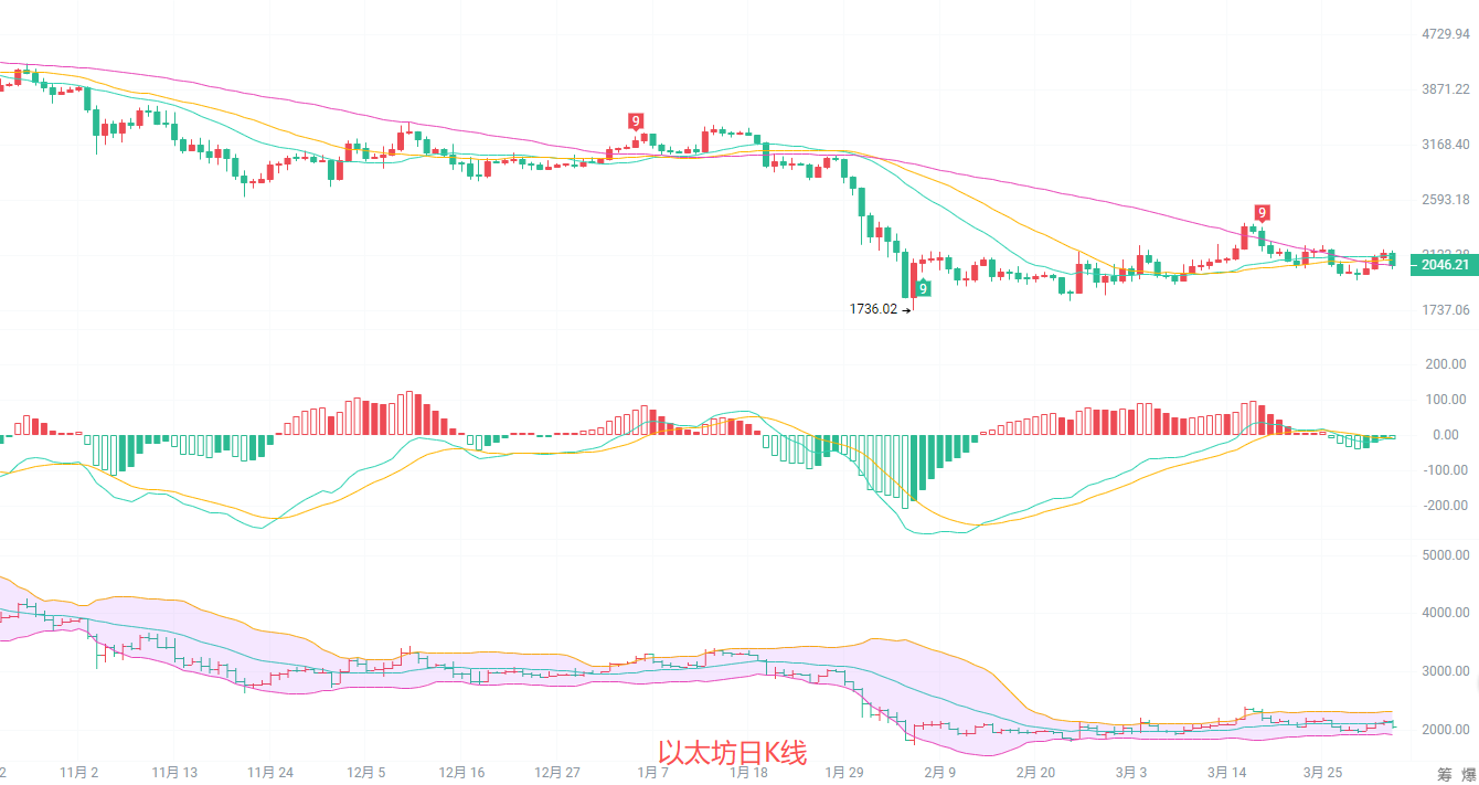 以太坊现价2045,最近的行情可以用过山车来形容,前期从1736的低点一路反弹,让不少人以为牛市要来了,结果4月2日直接一根大阴线,把北上打回原形。现在价格卡在2046左右,上不去也下不来,多空双方打得难解难分,持仓的朋友心里都没底。其实不管是做多还是做空,核心都是找对关键的支撑和压力,不盲目跟风,接下来我们用技术面给大家拆解清楚当下的行情和操作思路。