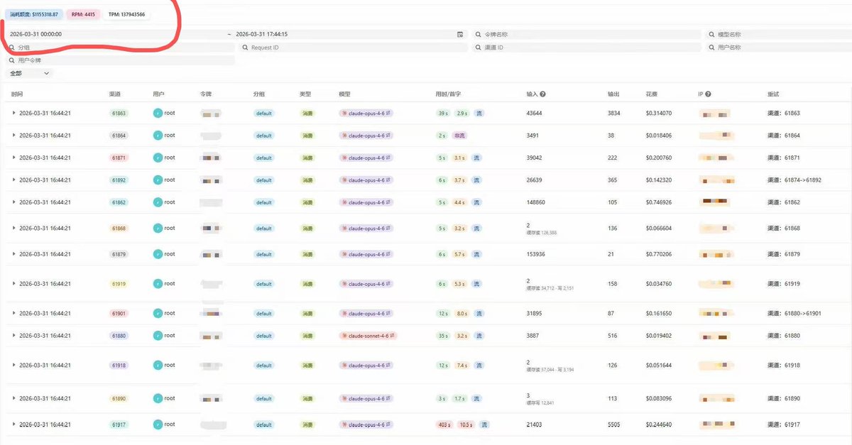 最后留一张图,卖token这能财富自由。我朋友逮到了几个大户,也就是B端公司使用。真的恐怖