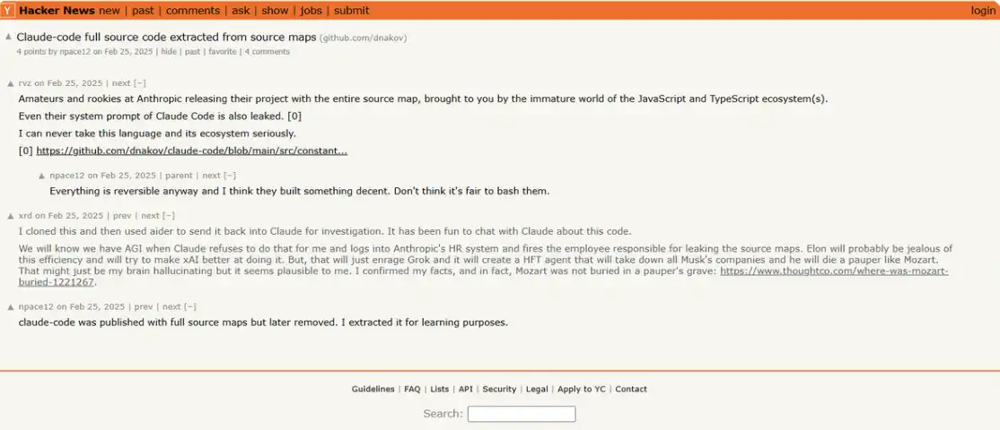 2025 年 2 月,就在一年前,几乎一模一样的泄露:同一个文件、同一种错误。Anthropic 当时从 npm 上删除了旧版本,移除了 source map,并重新发布了新版本,事情也就此平息。