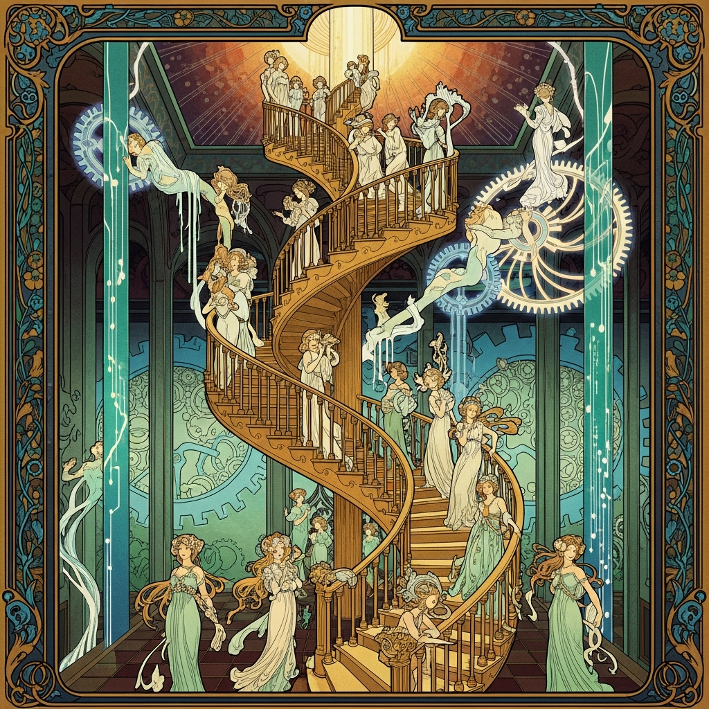 每一次技术革命之后,社会这个「螺旋楼梯」整体往上走了一层。但人在楼梯上的相对位置,是来回晃动的——这一轮被挤下去的人,下一轮继续在新的底层重新排队。