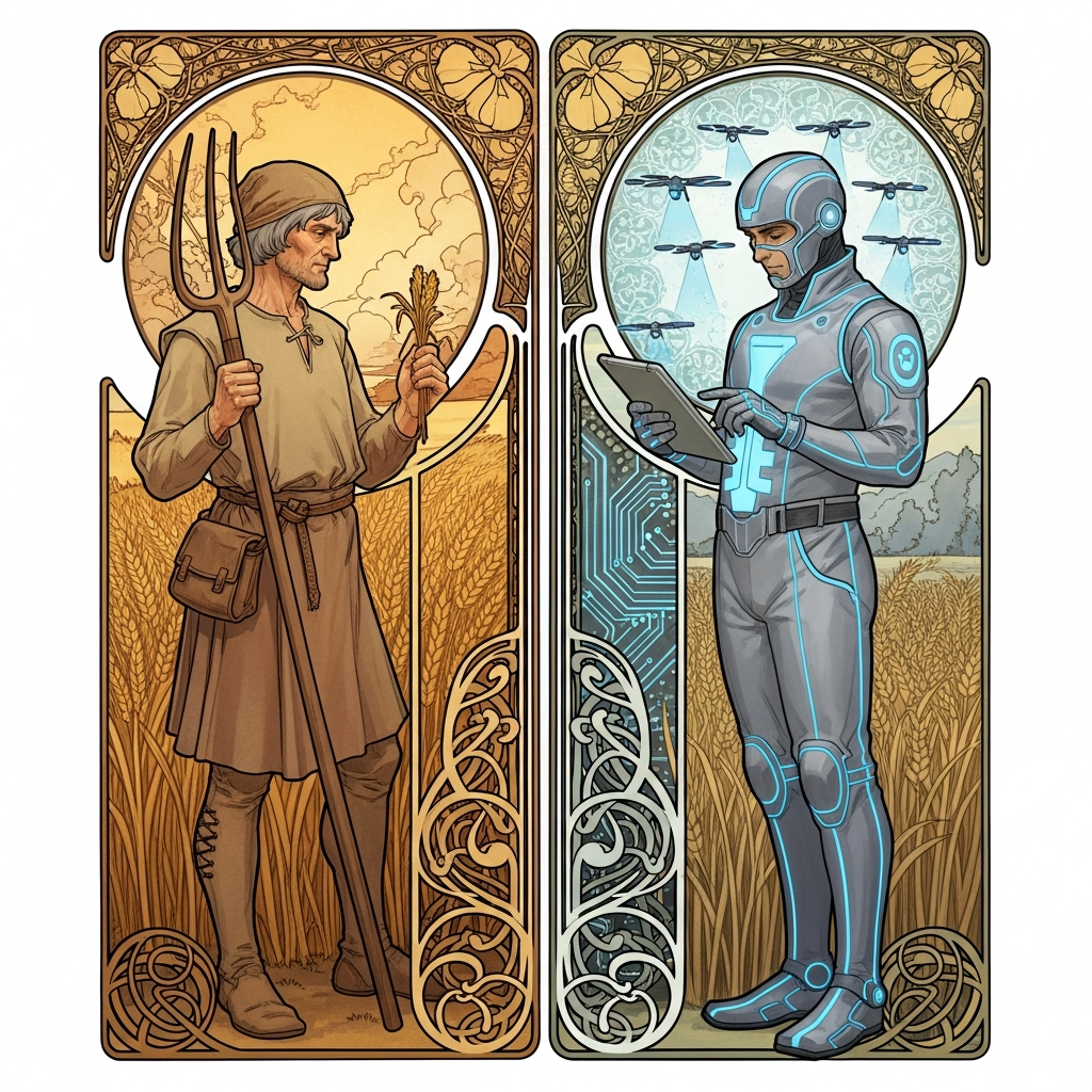 把时间倒回两百年前的英国。第一次工业革命蒸汽机发明之后,大量农民被从土地上赶了出来。他们涌入城市,成为工厂里的工人。在当时的人看来,这是「堕落」——祖祖辈辈种地的农民,变成了在流水线旁边拧螺丝的「工人」。