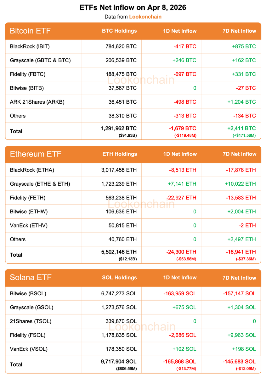 1日净流入:-165,868 $SOL(-$13.77M)🔴
