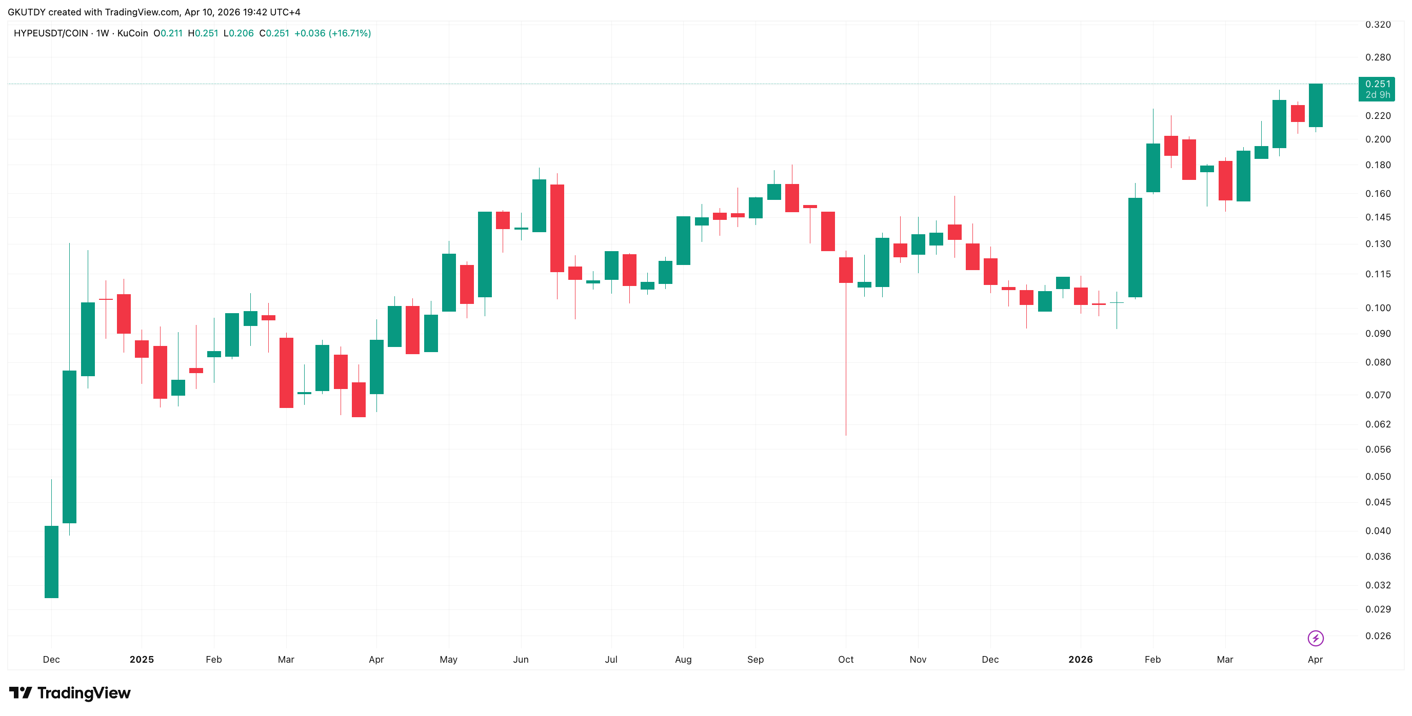 周五,04/10/2026 - 09:45 Hyperliquid (HYPE)并未结束:发现鲸鱼活跃度激增作者Arman Shirinyan