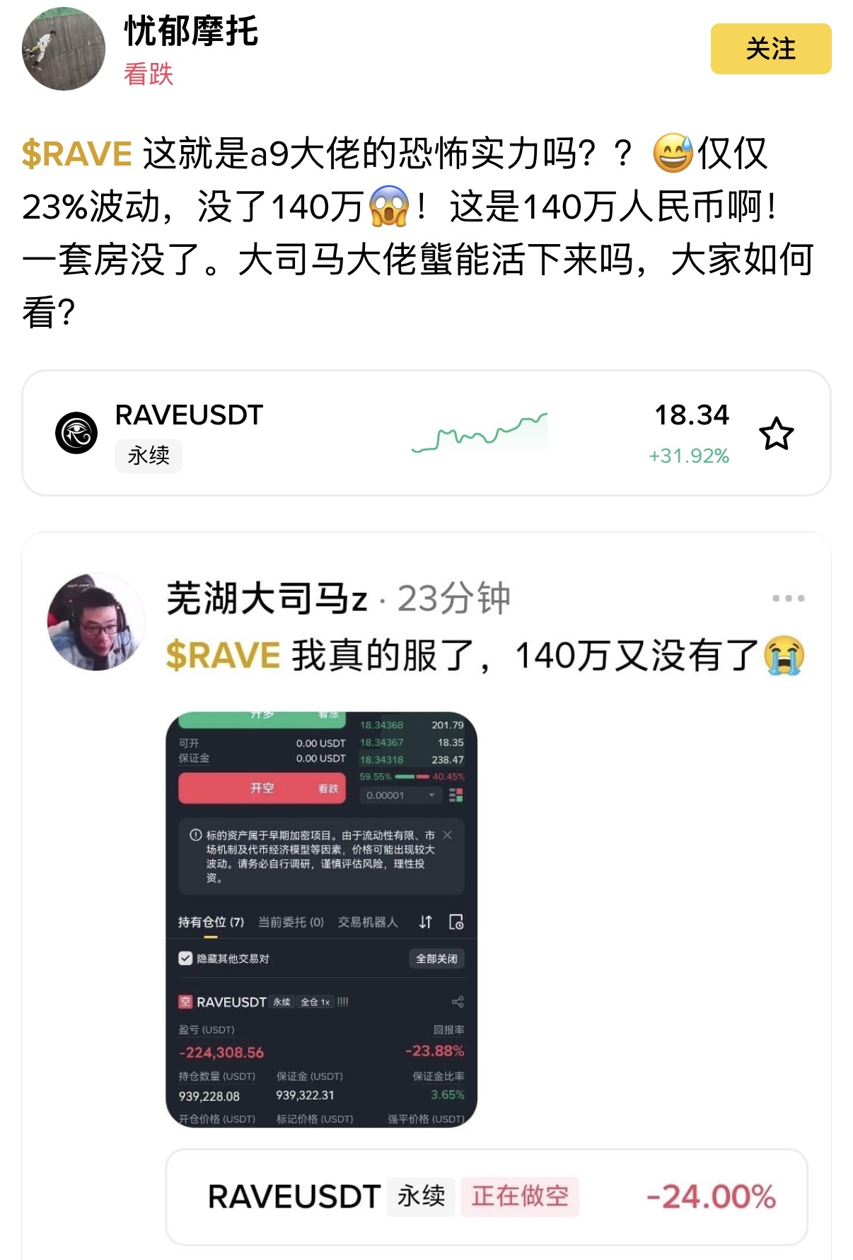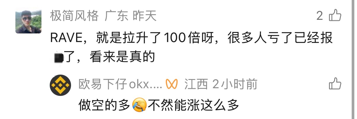 网友辣评:RAVE 真的拉升了 100 倍,很多人都做空亏钱了,看来是真的。