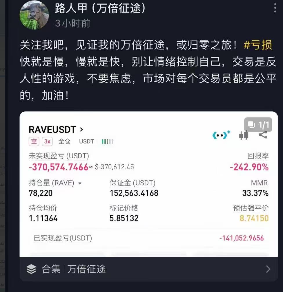 有位准备开启「万倍征途」的网友在 1 美元附近做空了 RAVE,如今看来已经完成了「归零之旅」。
