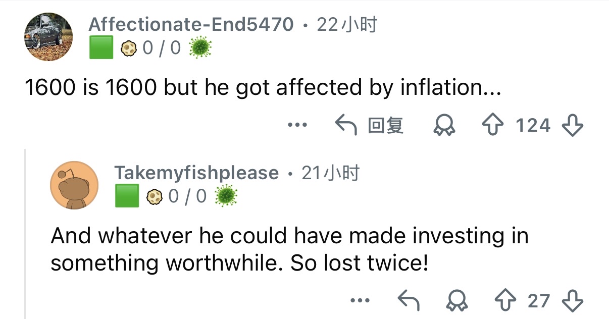 网友辣评:1600 美元就是 1600 美元,但他受到了通胀的影响……