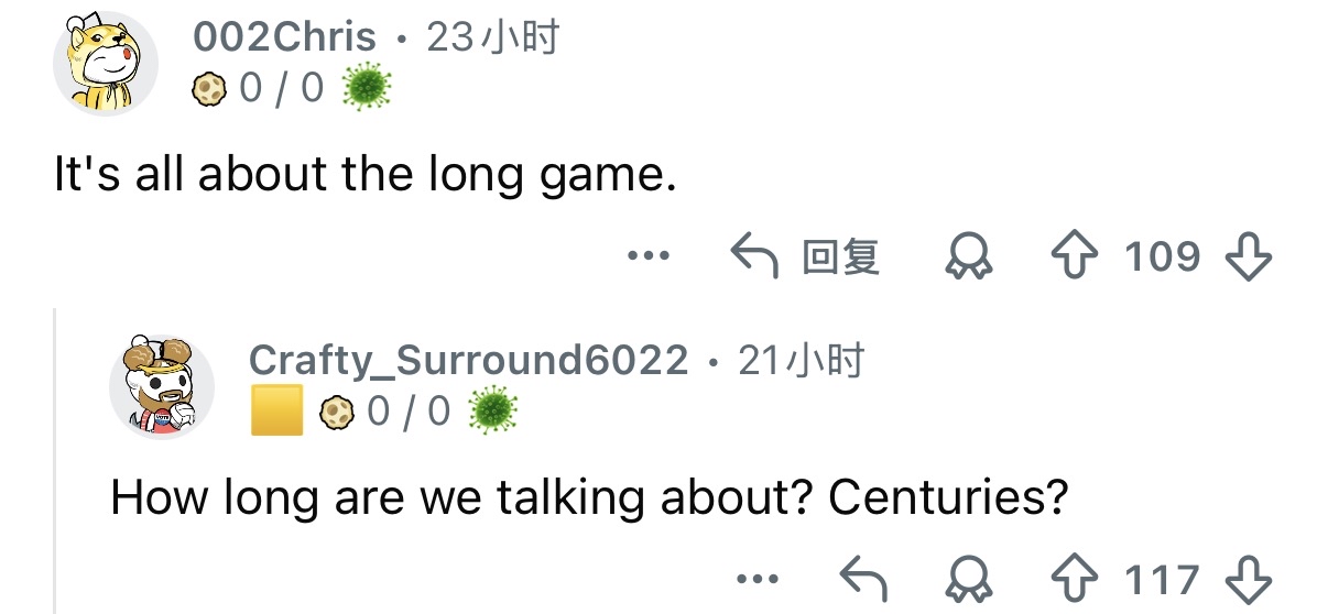 评论回复称,所以我们说的「长期」是多久?几个世纪?