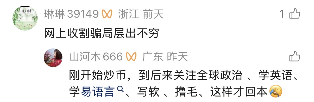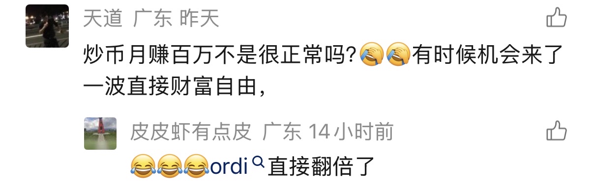 网友辣评:炒币月赚百万不是很正常吗?🥹