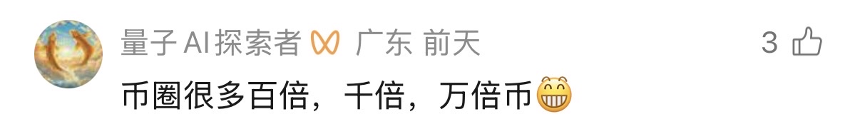 也有网友表示,币圈还有很多千倍、万倍币😎。