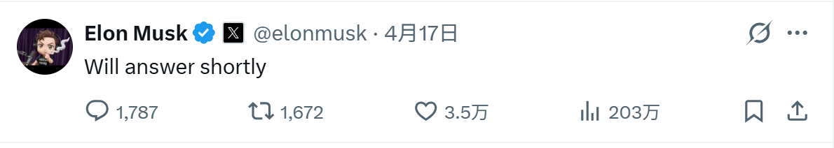 马斯克应承下,「马上就回」。这一「信号」也被链上市场迅速捕捉到。