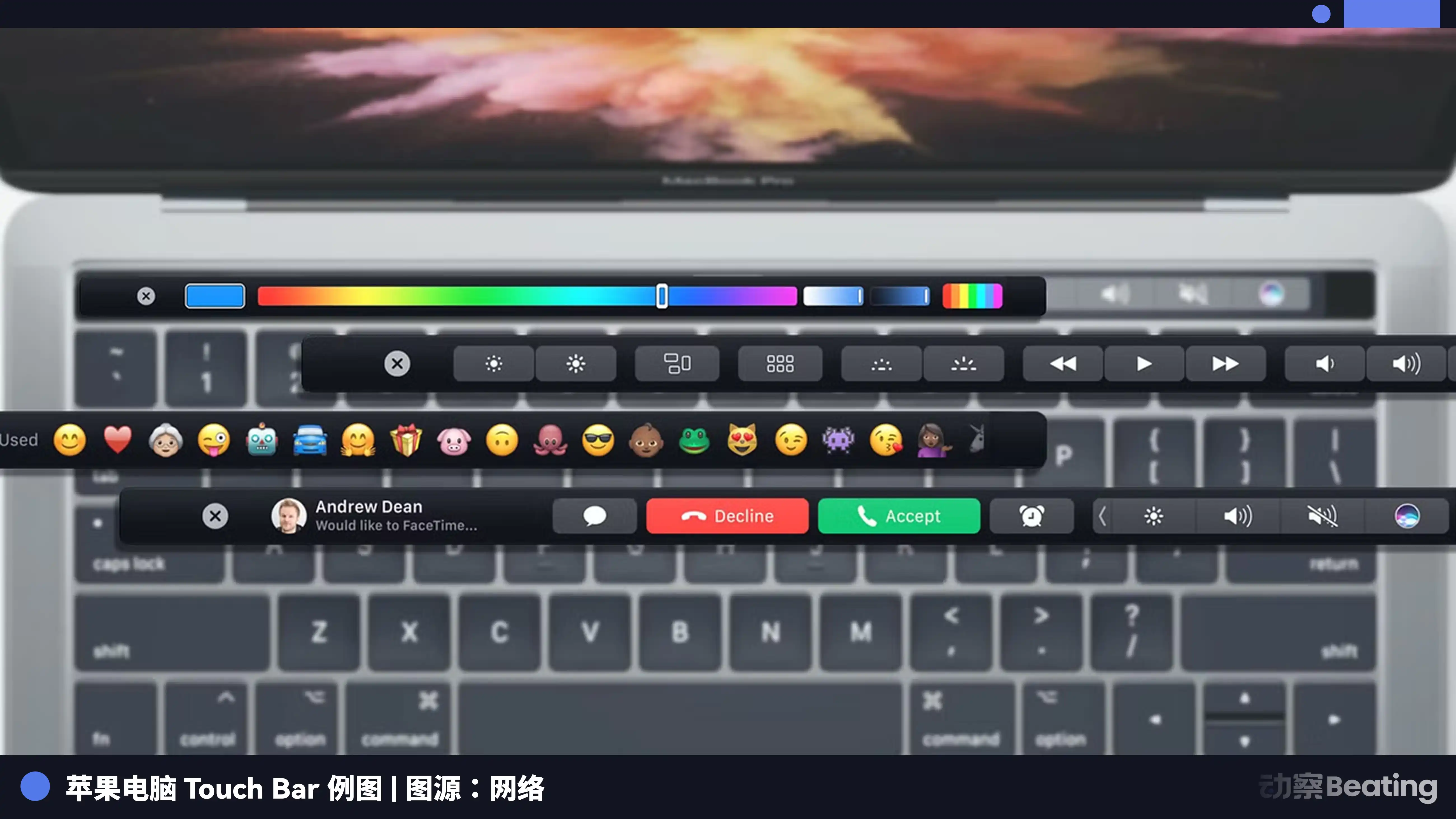 为了让 MacBook Pro 看起来更具未来感,设计团队决定用一条 OLED 触控屏幕替代传统的物理功能键。为了把机身厚度再削减几毫米,他们发明了键程极短的「蝴蝶键盘」,可缩短的键程让使用体验像在敲一块木板,并且一粒灰尘就能让整个键盘罢工。
