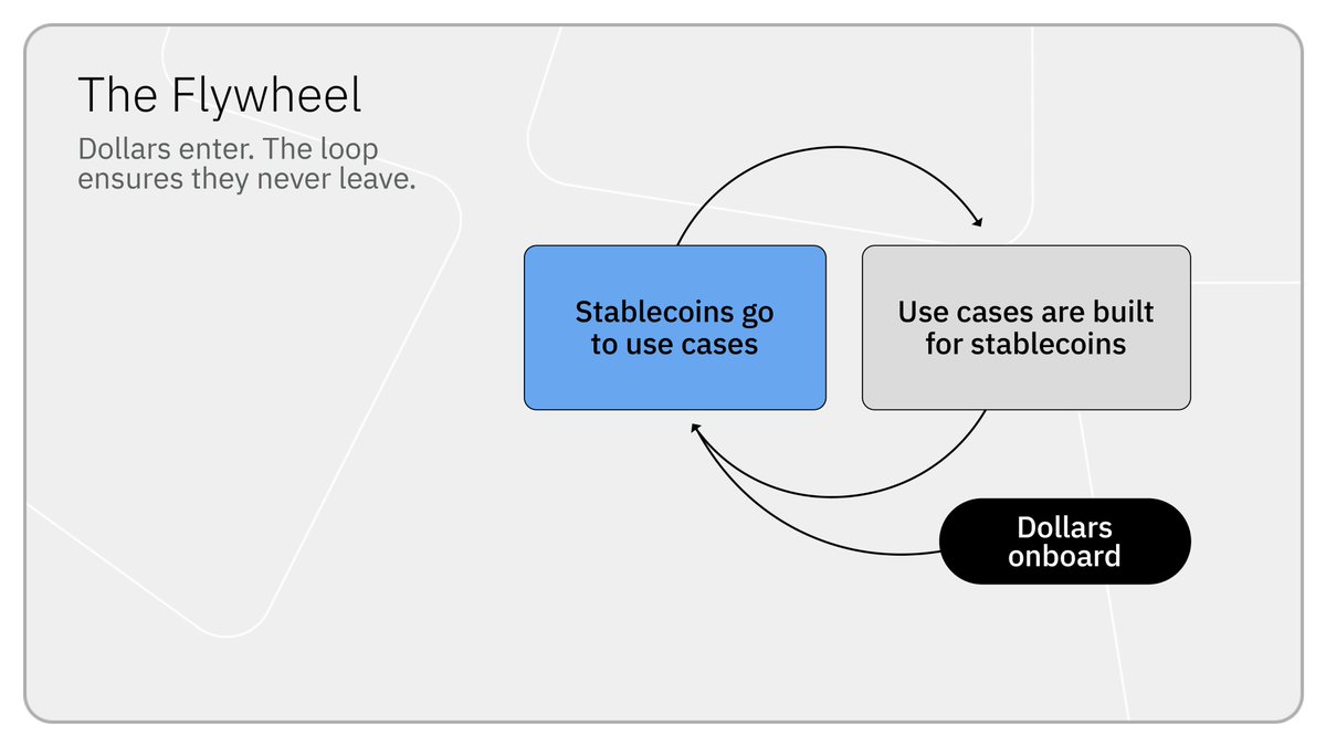 稳定币的普及与链上经济活动现已形成正向飞轮,这一增长结构已然不可逆转。而造就这种不可逆趋势的核心逻辑却一直被严重低估:稳定币流向链上 → 开发者打造各类应用场景沉淀资金 → 更多稳定币被持续吸引入场 → 循环往复、不断强化。
