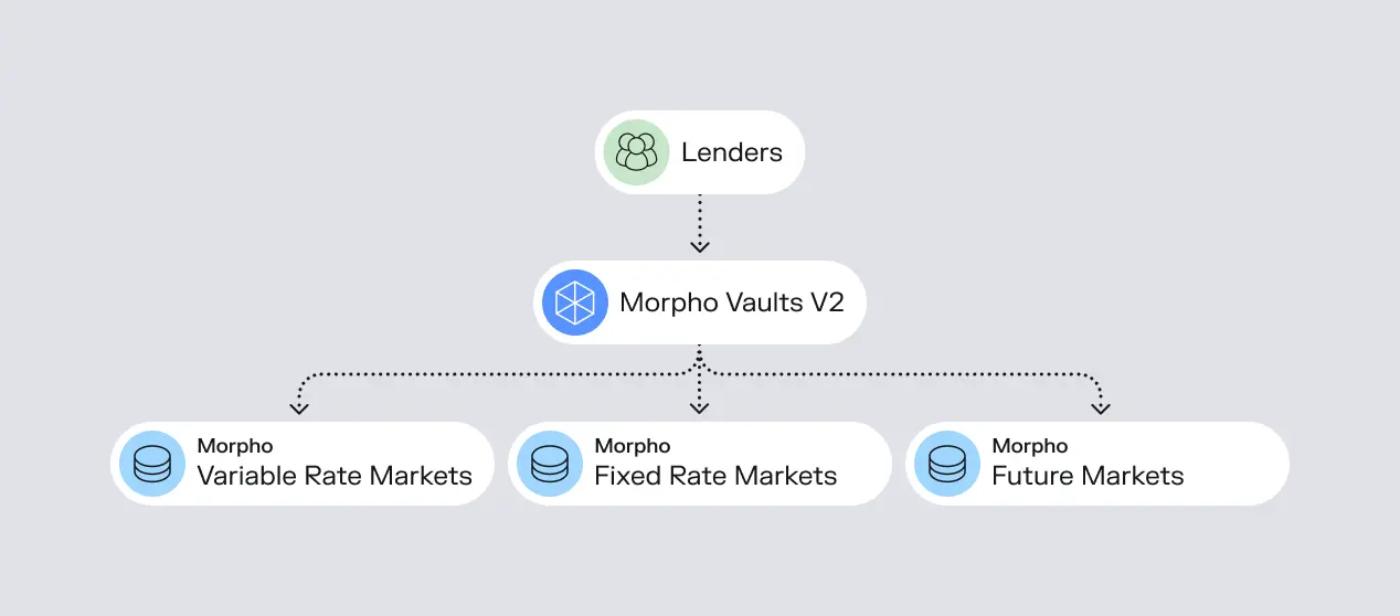 Morpho的V2金库是目前公开的最具代表性的设计,它将固定利率贷款纳入了承诺即时流动性的金库体系中。