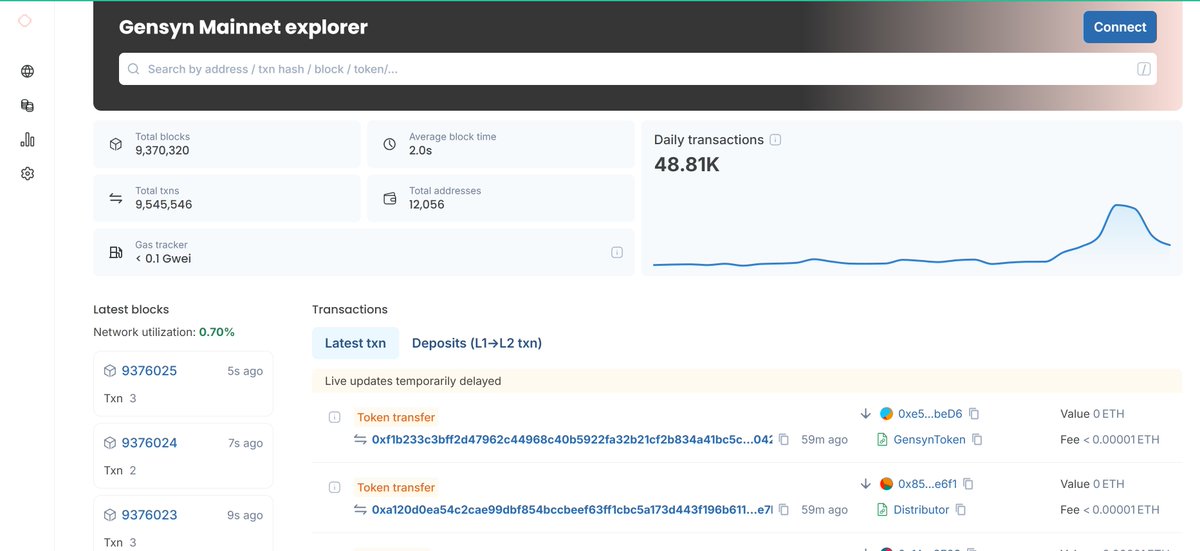 区块浏览器显示,Gensyn Chain 有一定的生态活跃度。