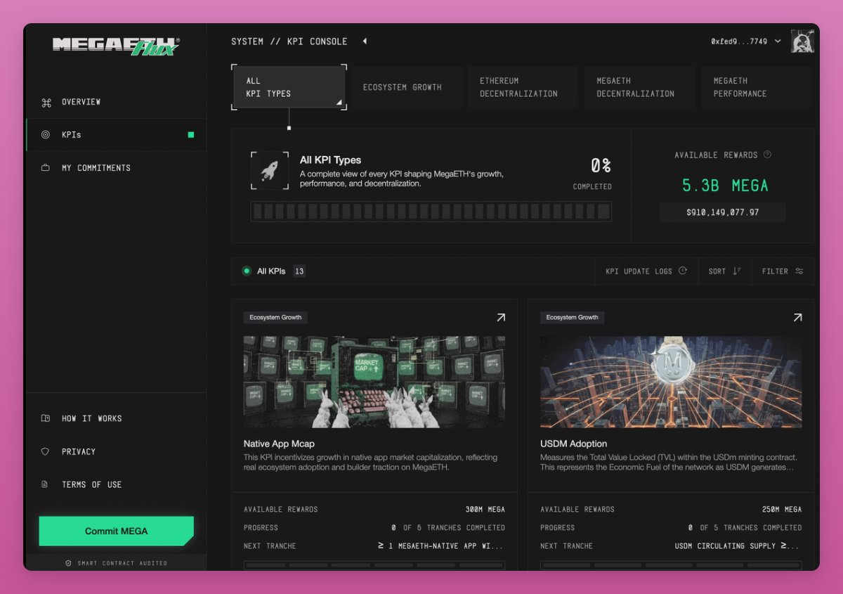 53%的$MEGA供应将根据关键绩效指标解锁。