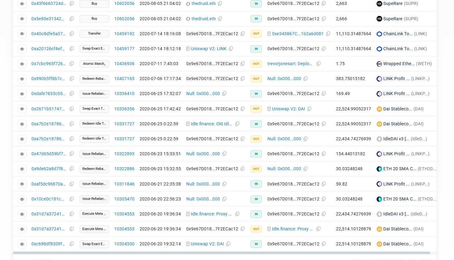 从链上的活动分析来看,MrBeast 的钱包地址最早的可以追溯到 2020 年 6 月,初期的操作主要是针对一些 DeFi 项目进行质押。虽然在今天 DeFi 质押已经成为加密行业当中的常规玩法,不过,当我们把时间线调回 2020 年,会发现这种操作极具领先性。