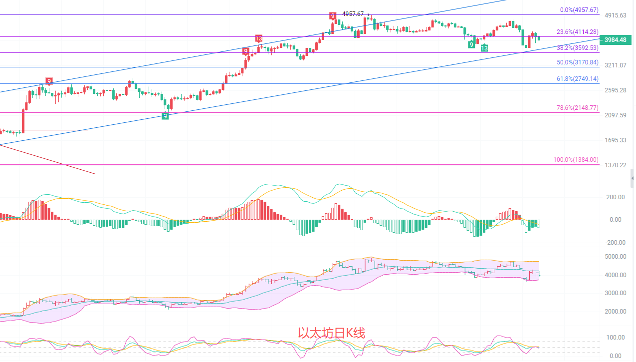 以太坊现价3985,现在是北京时间凌晨两点,4250南下错过的币友在昨日4210上车了,发稿前3950的利润已经锁定了,剩下的就是继续持有就可以了,目前的盘口过了4200南下本周基本是等不到了,没有入场的等不到也要等不要随便开仓,安全第一,等回调以后找位置继续南下