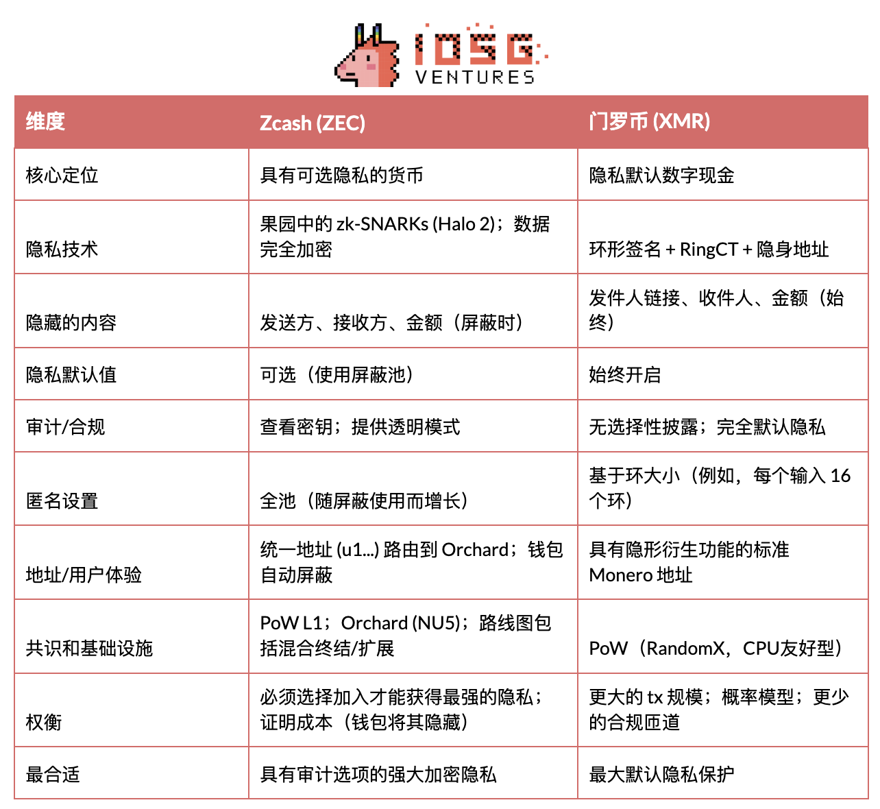Monero (XMR)使用不同的工具包,在每笔交易中默认提供隐私环形签名(在许多诱饵交易中混合原始交易,因此观察者无法分辨出哪个钱包真正发送了资金)、RingCT(隐藏金额)和隐身地址(接收者通过一次性的隐藏地址获得付款,该地址无法链接回其真实钱包。)这使得使用变得简单,但隐私是概率性的:强度取决于环的大小(如 16)、诱饵选择和用户行为。在实践中,它的私密性很高,但在审计时没有选择性披露,而且由于合规方面的摩擦,一些交易场所避免将其列入清单。