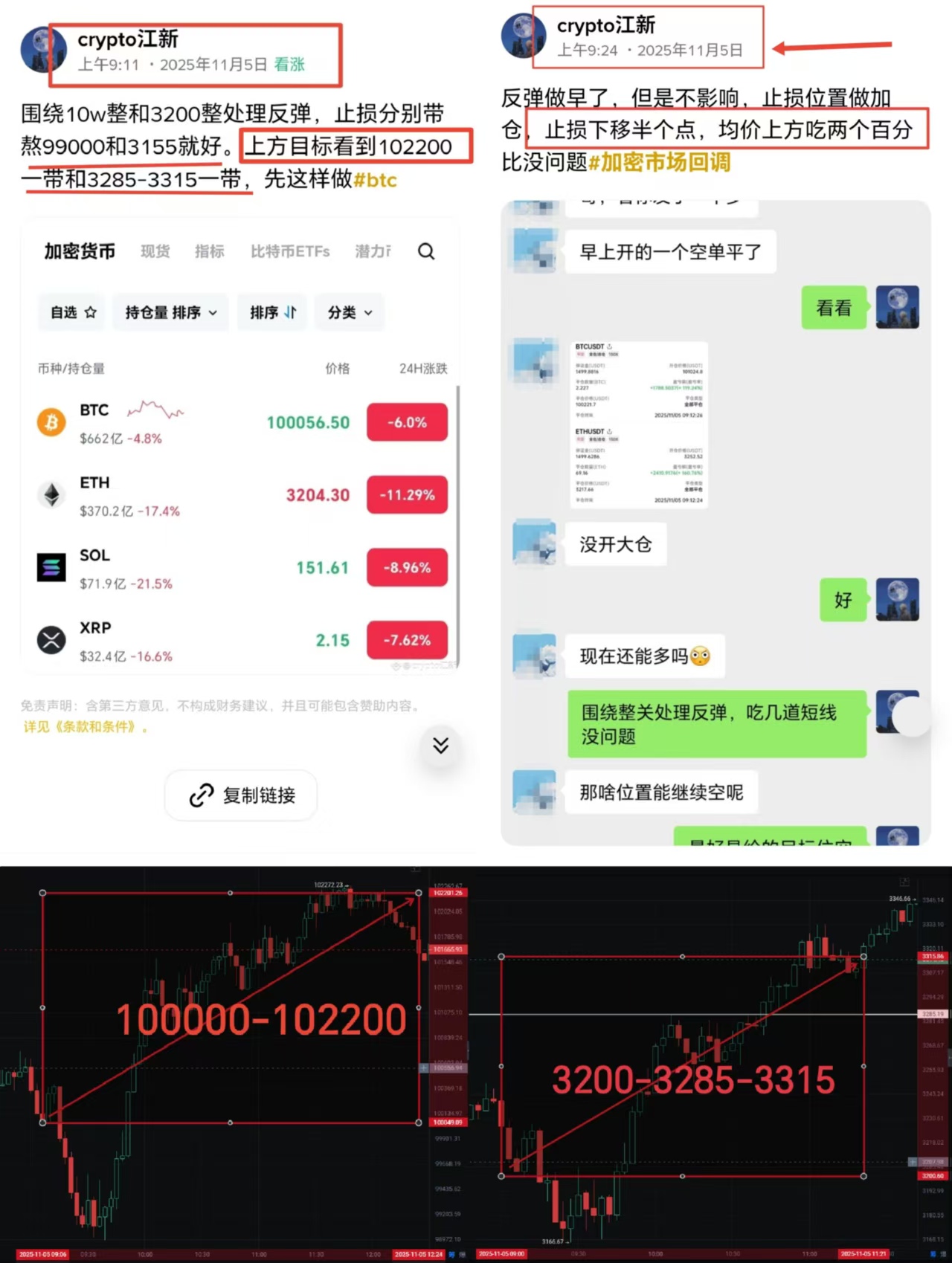 中线朝前低看,短期大饼看10w,以太看测试3250一带,跌破看测试3200,并围绕这一带震荡。大饼波段震荡围绕10w-103200,以太围绕3180-3380保守大区间,按几段分歧点随情绪分段处理
