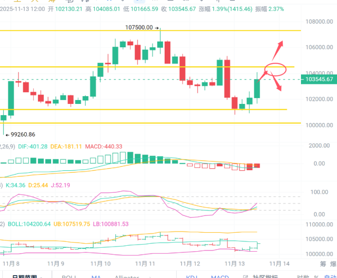 操作上建议:105000附近轻仓空,目标103000-102000。101000附近轻仓多,目标103000-104000。行情变化万千,具体操作以实时策略为主。