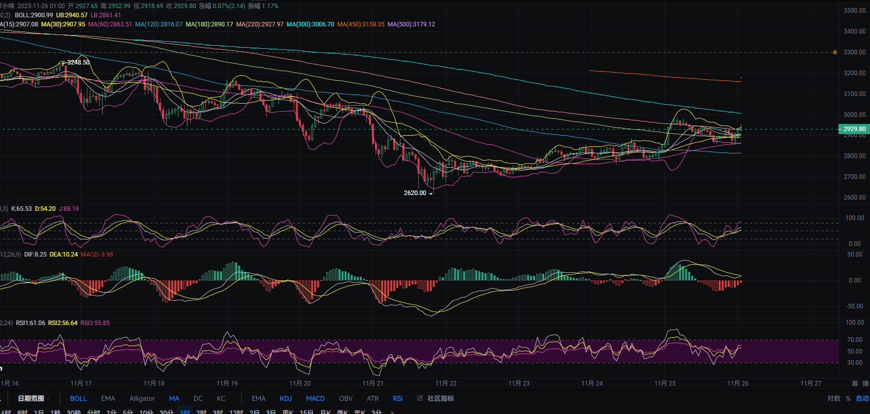 11.26张历辉:以太坊4小时拐头向上收复3000在即!今日以太坊(ETH)最新行情分析及操作建议!