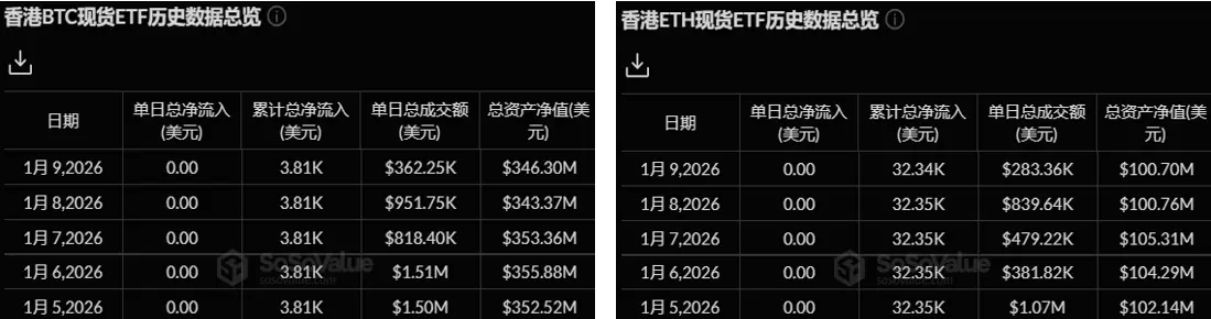 香港以太坊现货 ETF 无资金流入,资产净值为 1.00 亿美元。