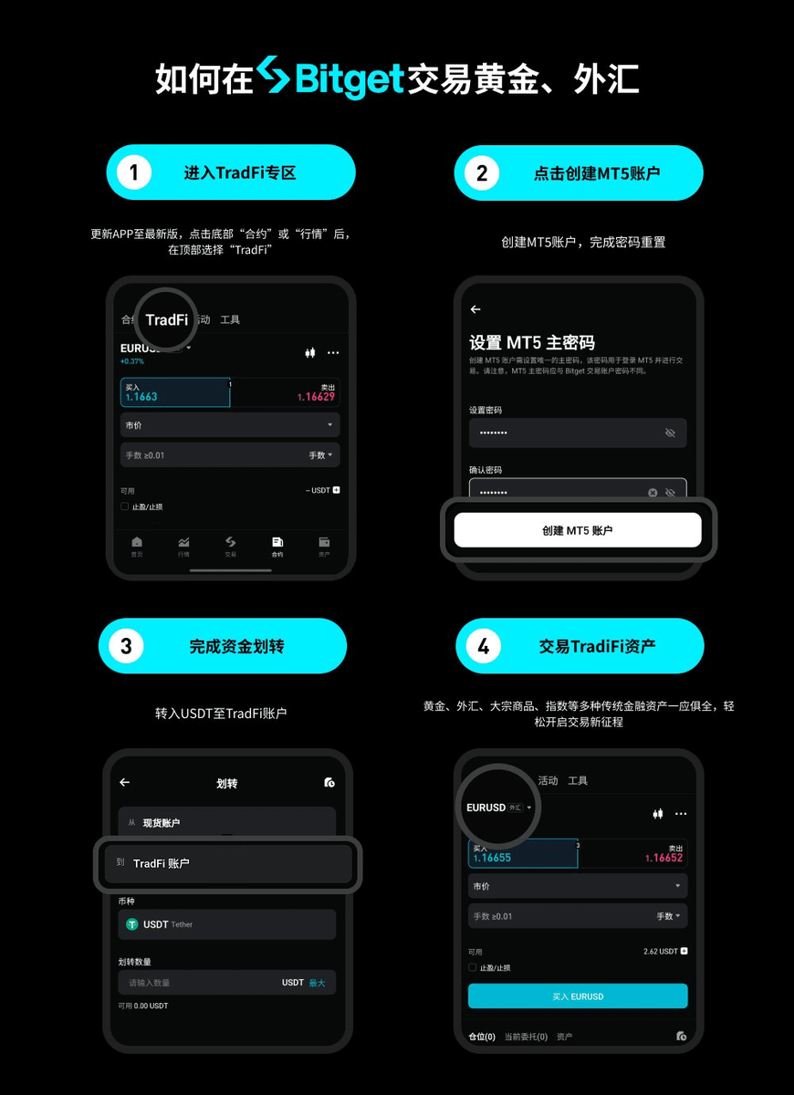 而我最近试了下 #Bitget 的 #TradFi,产品体验不得不服,真正让币圈和传统金融市场,实现了无缝衔接。只需要一个 #Bitget APP,直接用 USDT 开多黄金和白银。 全程没碰一分钱法币,没切钱包,也没重新做 KYC。 从资金划转到下单成交,不到三分钟。界面毫无学习门槛,K线,下单,交易,跟我们平时炒币基本一样。