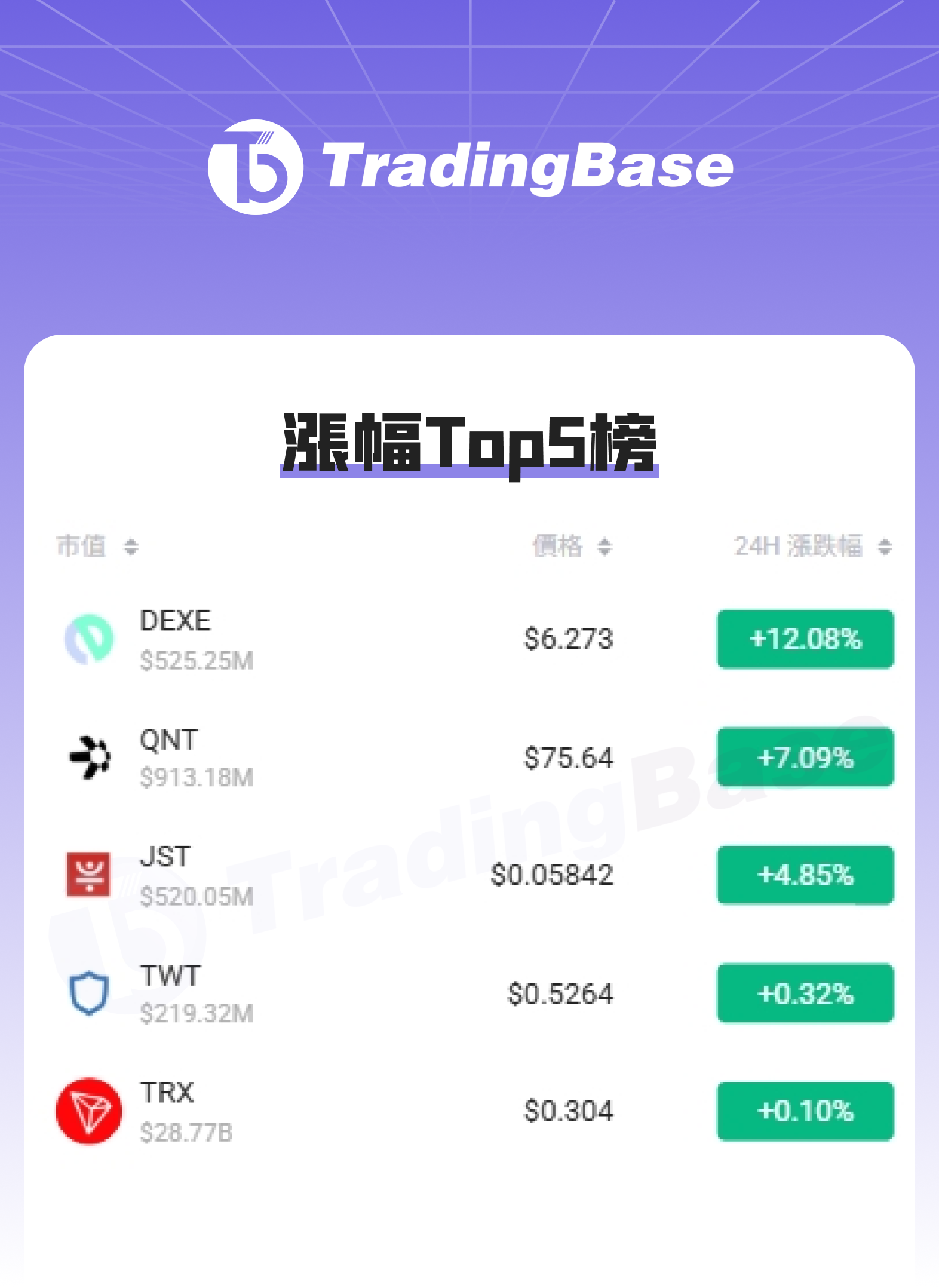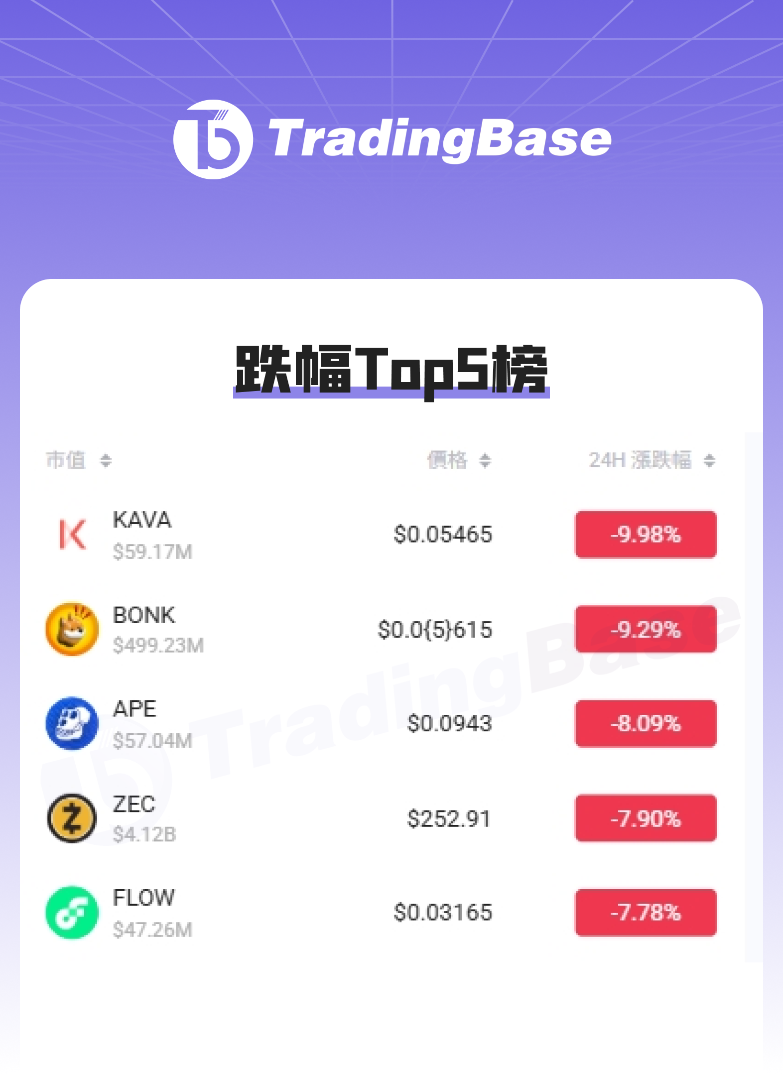 四、24h 币种涨跌幅 TOP 榜